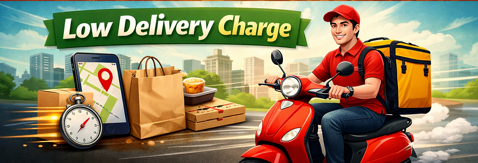 Lowest possible food prices + very reasonable delivery charges — that's our promise. Save up to 40% compared to other platforms.